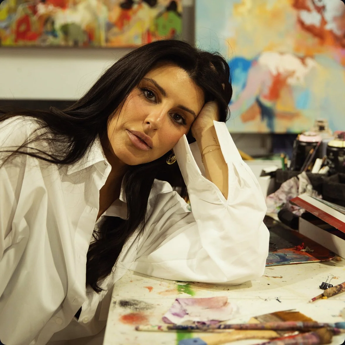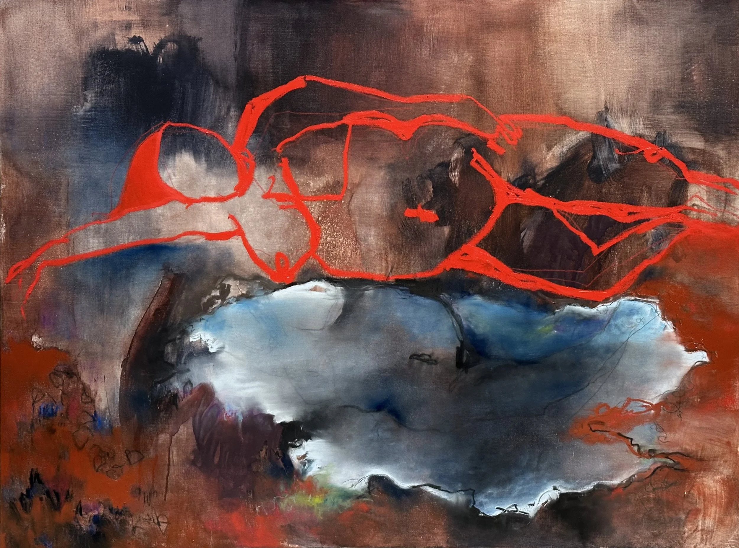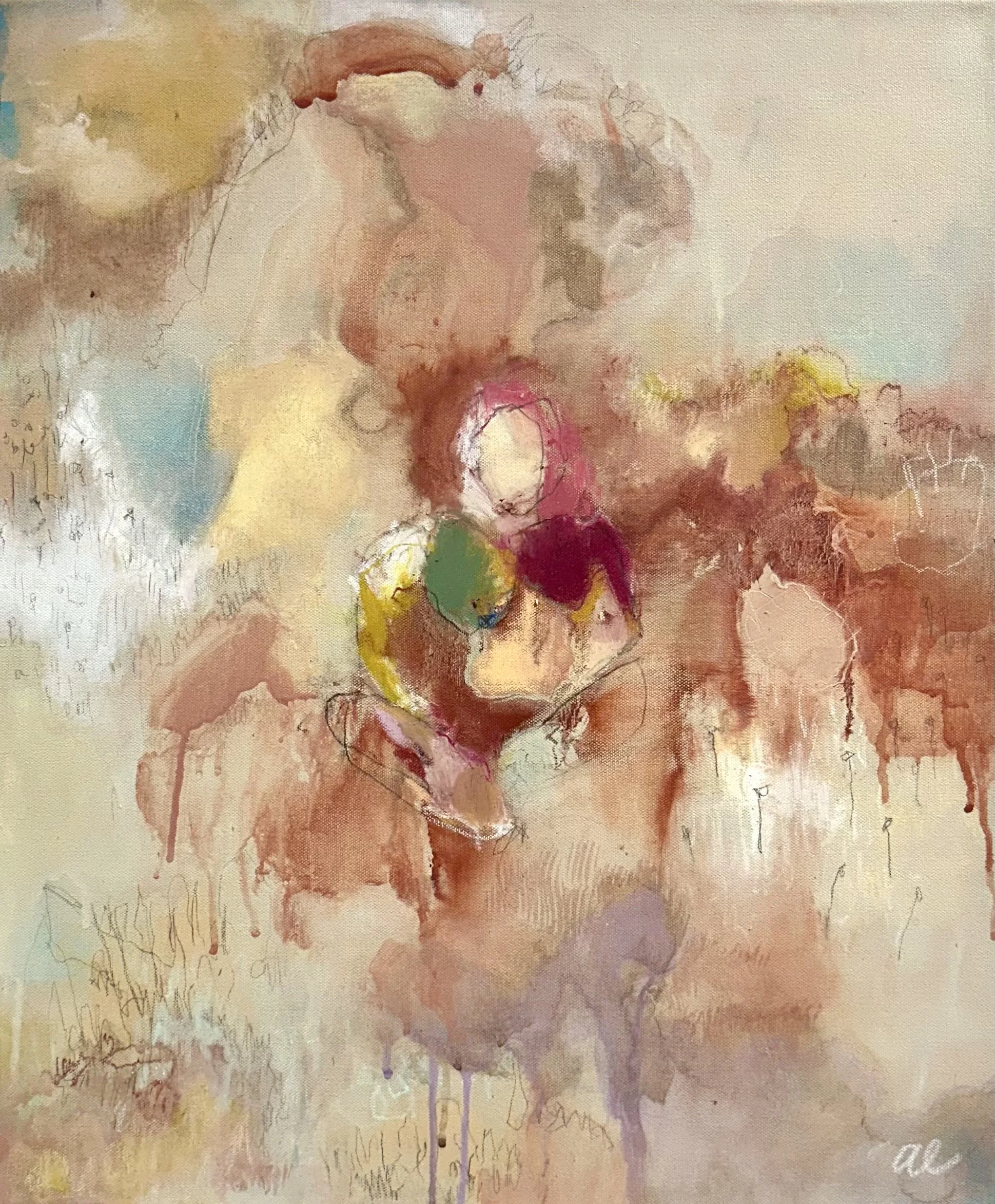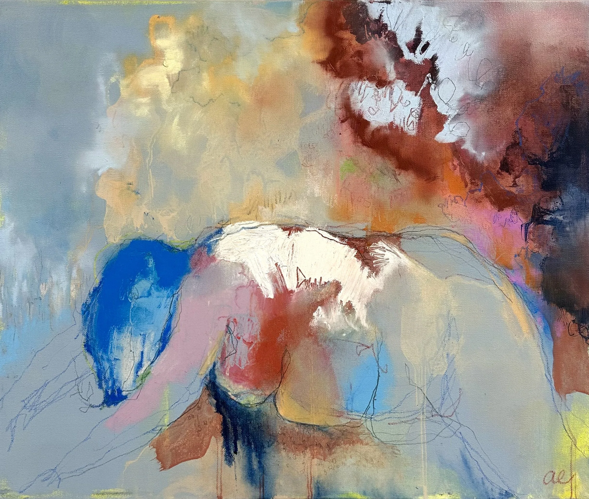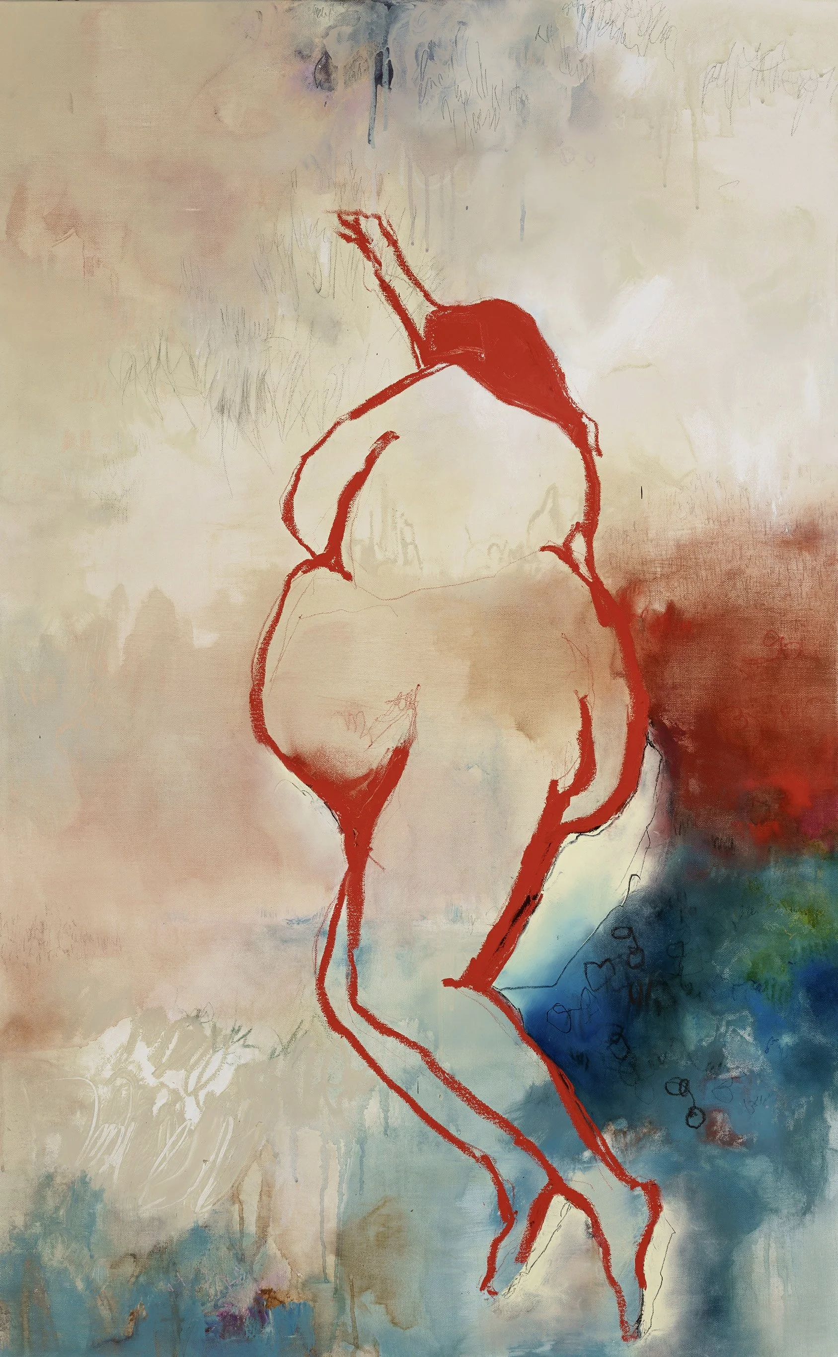 This collection explores the relationship between the human form and the desert landscape. While Aguilar’s muted, monochromatic self-portraits depict the artist merging with nature, Anjuli takes a vibrant, abstract approach — reinterpreting Aguilar’s images through gestural mark-making and bold expressions of color. Each painting in this series tells a story of self-discovery, influenced by Anjuli’s return to art after a long hiatus. The vulnerability and creative tension she found in Aguilar’s work resonate deeply in her own pieces, making BOULDERS a fresh take on how art connects and inspires